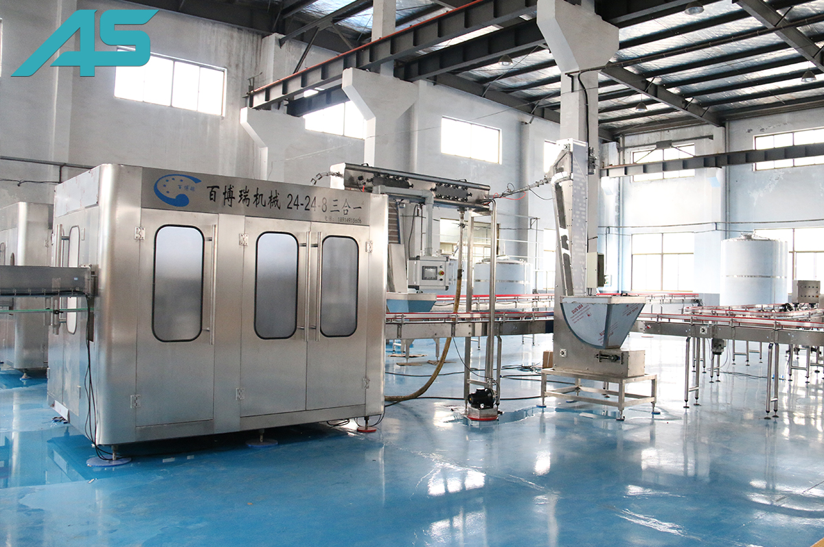 山泉水灌裝線由自動消毒水沖瓶機, 純凈水沖瓶機、灌裝機、旋蓋機(四合一設備),套標機縮標機、激光打碼機, 熱收縮膜包機,裝箱機等系列產品組成。具有工藝先進、系統(tǒng)完善、性能可靠、使用方便等特點。